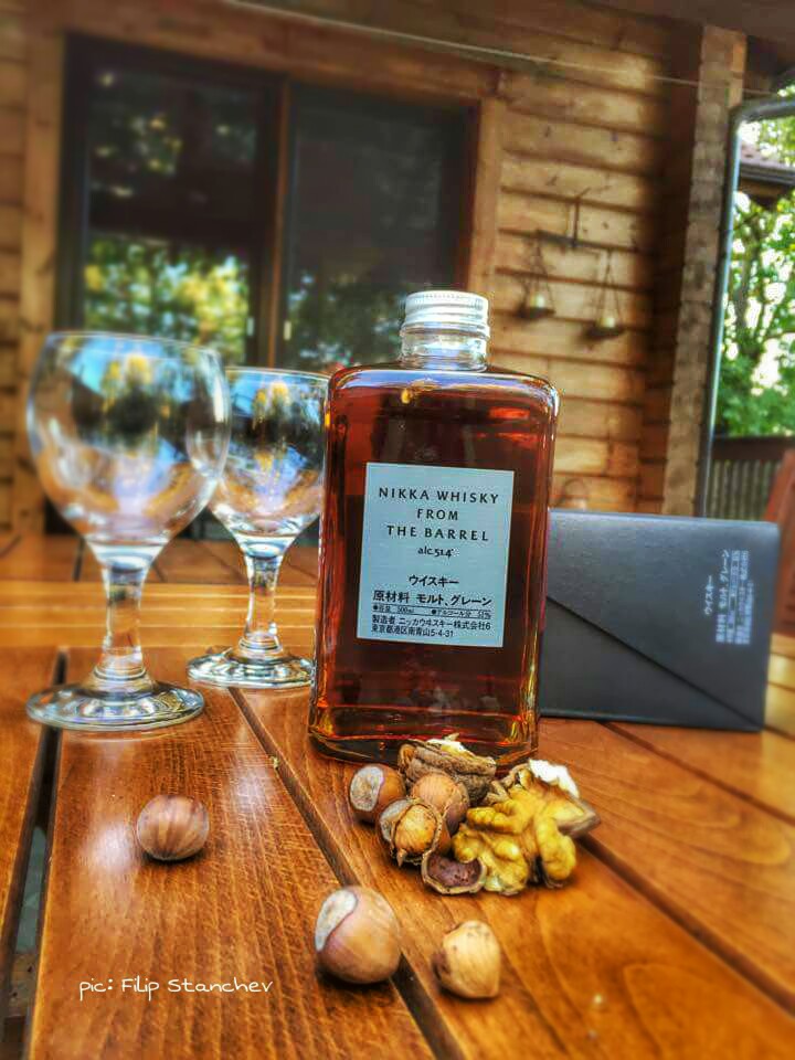 Дойде време за кратко бягство от зачестилите статии, посветени на шотландските малцови и смесени уискита. Този път в блога ще ви представя симпатичната бутилка на японската марка Nikka – Nikka Straight from the barrel, която напомня на шишенце от аптека или на стъклена касичка. Умалителната форма на обръщение не е случайна – уискито се предлага в бутилка от 0,5 мл /500 мл казано по друг начин/, независимо че съм я срещал и в огромната разфасовка от 3 литра, за която искаха огромната сума от над 400 лв. Както може сами да се убедите, уискито не носи означение на вързраст, защото съдържа голям процент младо уиски, което хората от Ника не желаят да посочат /в края на миналата година обявиха, че поради недостиг на отлежало уиски преустановяват до по-късен момент дистрибуцията на уиски от дестилериите си Yoichi и Miyagikyo, носещо обозначена възраст/. Тази практика е все по-разпространена и обхваща огромен процент и от шотландските дестилерии /П.С. знаете ли как се прикрива младостта на едно уиски – с висок градус и отлежаване в активни бъчви, които да я замаскират :)/. За сметка на това, уискито е с висок алкохолен градус – 51,4% и представлява смес между малцови дестилати /дестилиран покълнал ечемик/ на дестилериите Yoichi и Miyagikyo, и зърнено уиски, което навярно също е произведено на територията на Miyagikyo, тъй като тази дестилерия разполага с т.нар. „Кофи“ дестилатори /колонни дестилатори, кръстени на техния изобретател Ейнъс Кофи/ за производство на зърнено /царевично и/или пшенично/ уиски. Необходимите компоненти предполагам са смесени впоследствие и са оставени да доотлежат бъчви от бърбън /наличието на думата „barrel“ сочи на бърбън отлежаване/ Отдавна се канех да опитам тази Ника и след като размених няколко мостри с Филип Станчев, на когото благодаря и за красивата снимка, получих желания вкусен стимул.